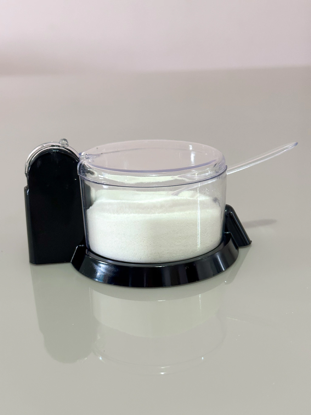 Com um sistema inovador que permite puxar a tampa para abrir, você nunca mais terá problemas de acesso ao açúcar! A tampa é fixada, garantindo que você possa usá-lo com segurança e comodidade. Ele acompanha uma colher de acrílico que combina perfeitamente com o design.