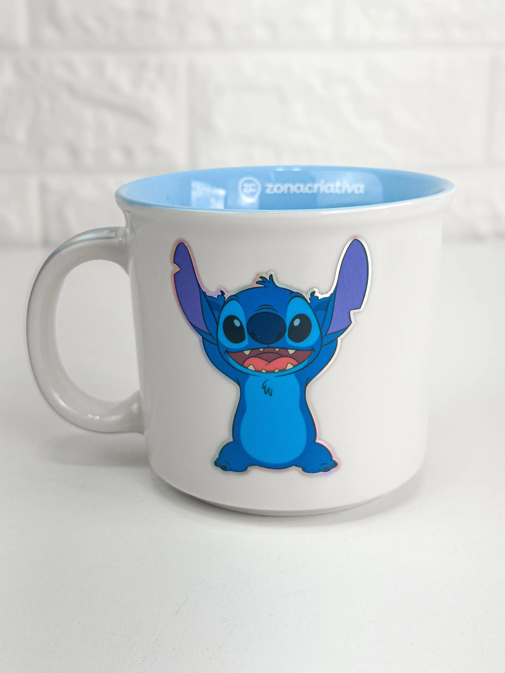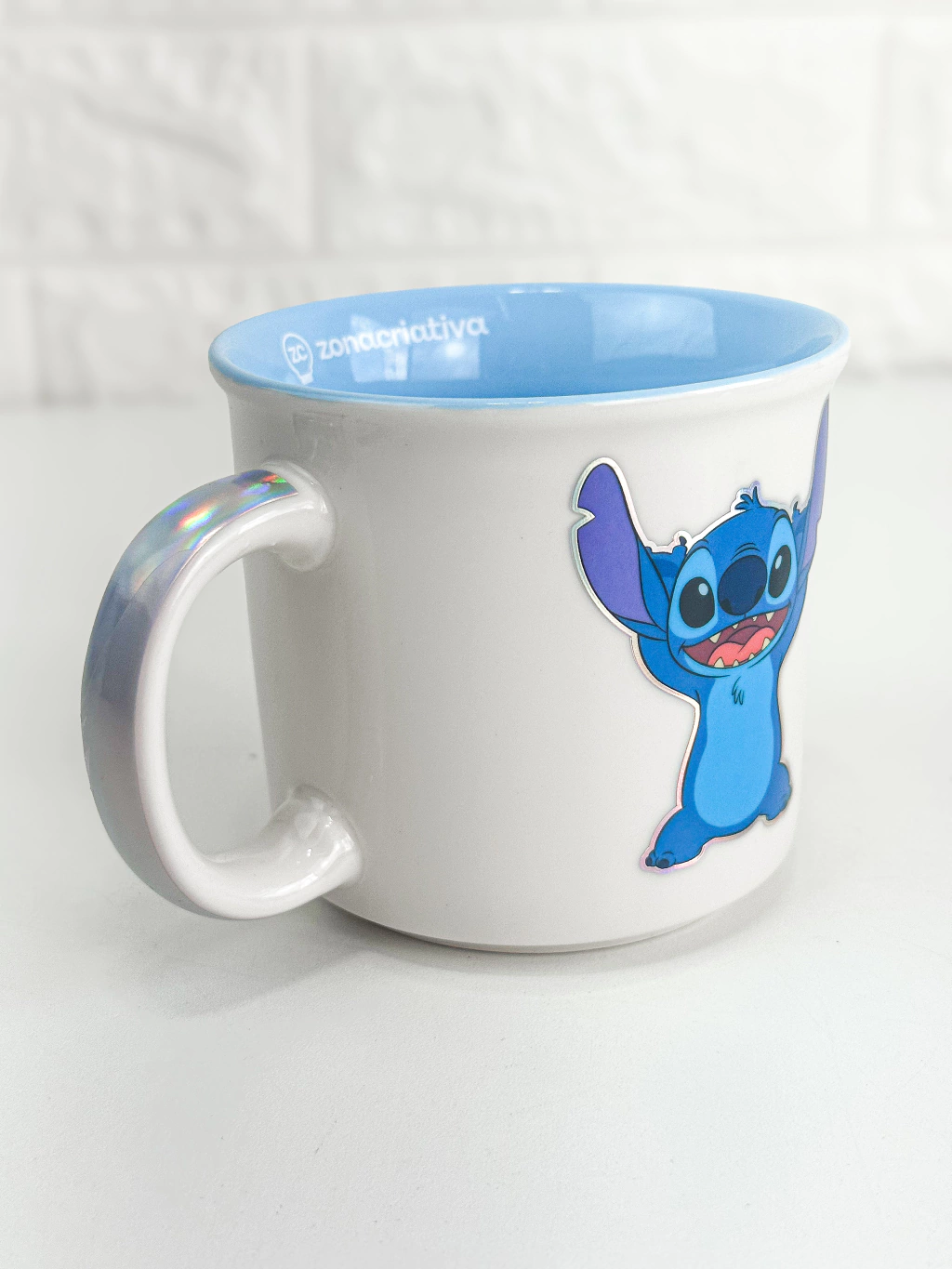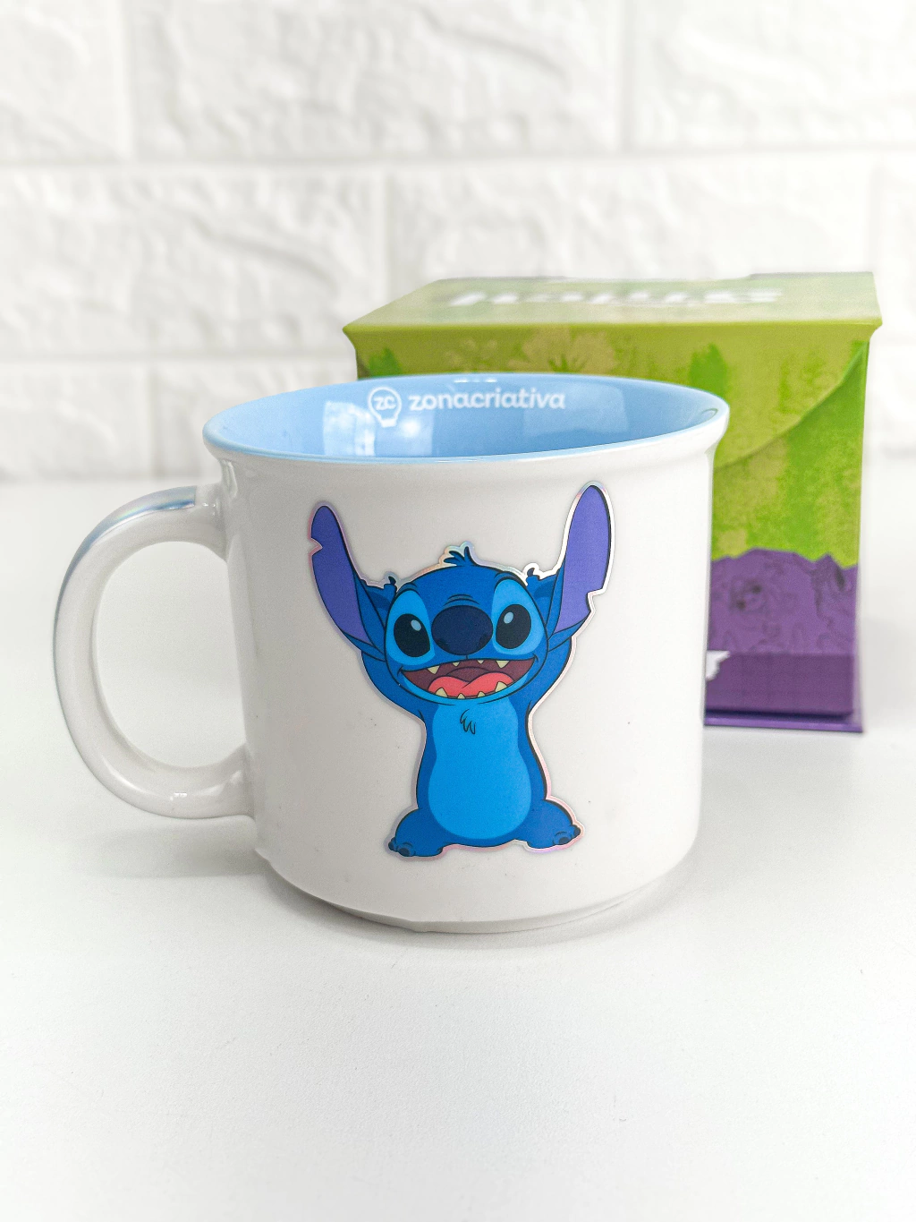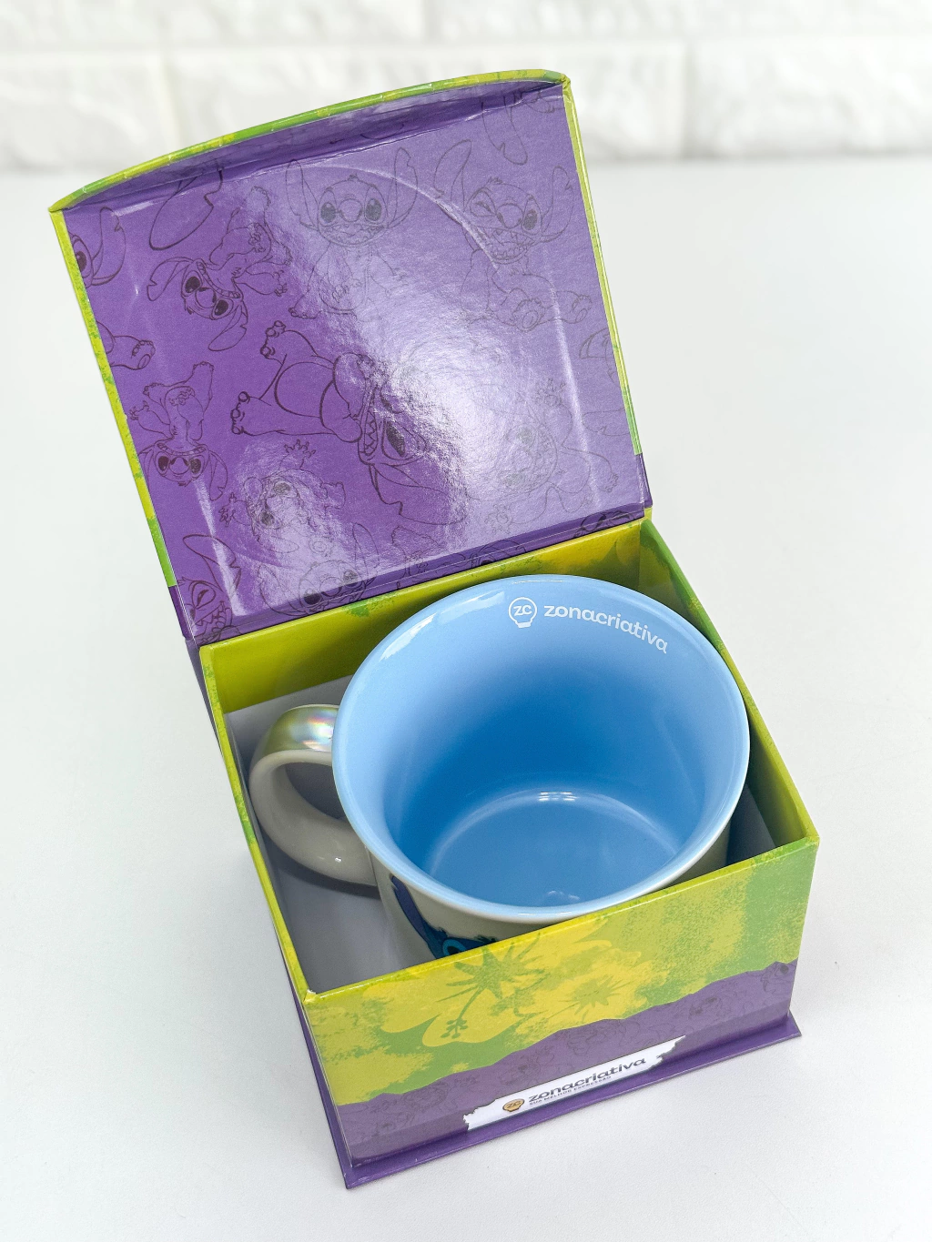 Apresentamos a Caneca do Stitch de Cerâmica com capacidade de 350ml! Esta linda caneca é branca por fora e azul por dentro, trazendo um design encantador que vai conquistar seu coração.