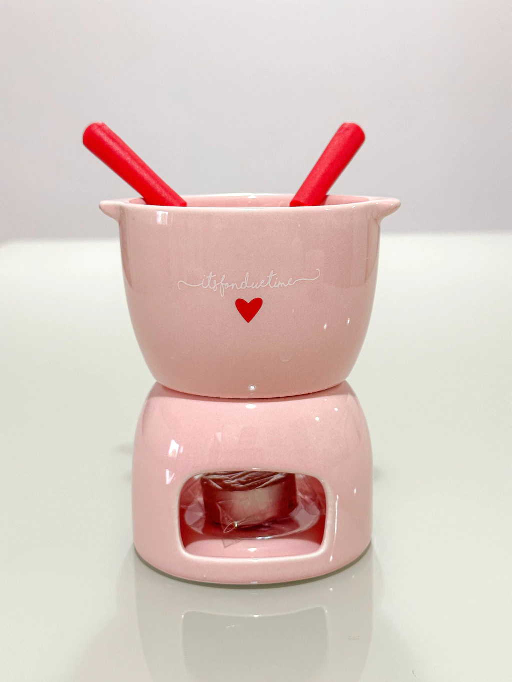 Quer deixar um encontro a dois ainda mais especial e romântico? O Conjunto Fondue L’ Amour é a pedida certa! Este conjunto delicado é composto por 1 panela de porcelana, 1 fogareiro, 1 vela e 2 garfos, garantindo um momento inesquecível.