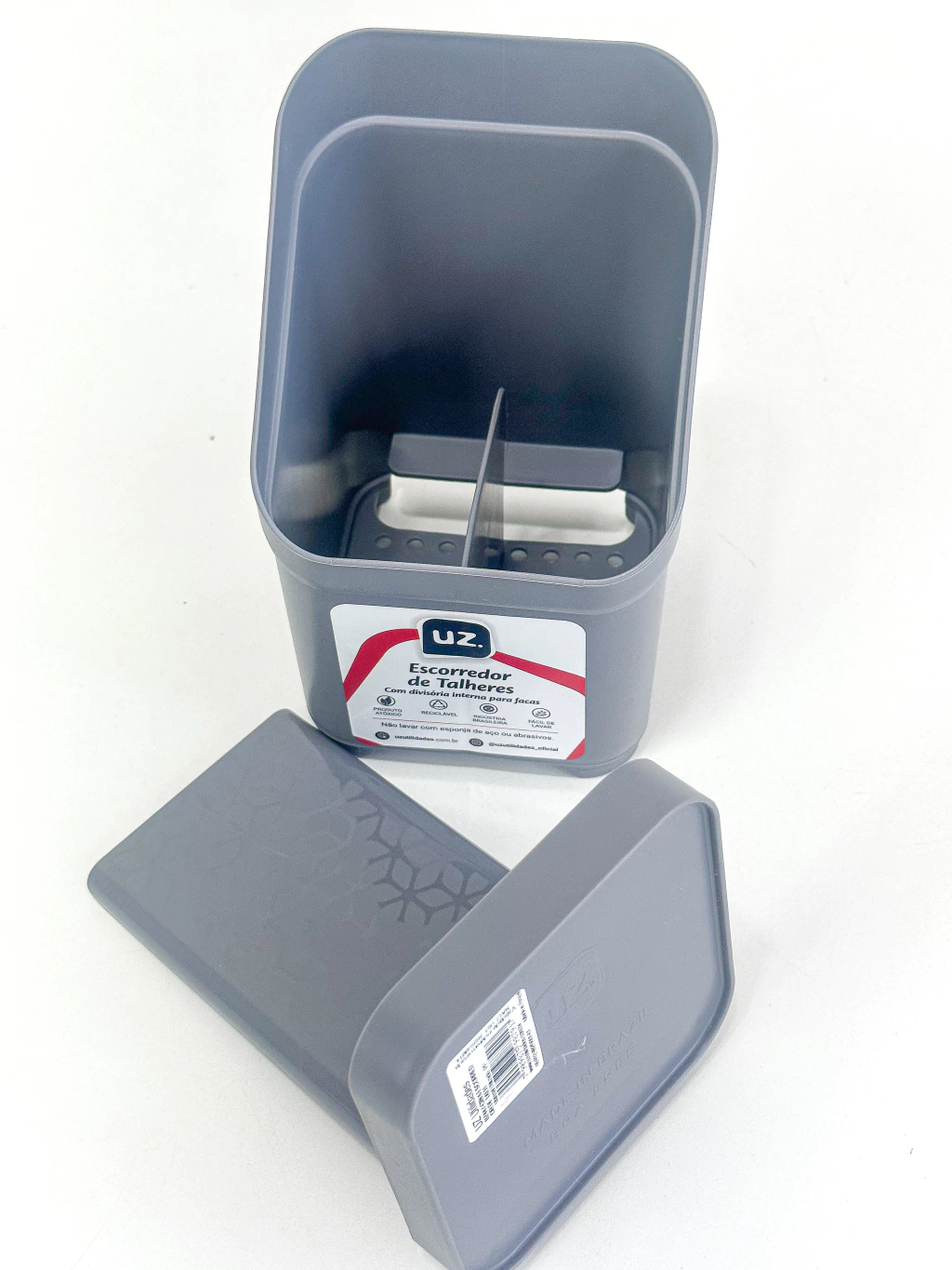 Transforme a organização dos seus talheres com o Escorredor de Talheres UZ! Este acessório é perfeito para quem busca funcionalidade e segurança em um só produto. Com uma divisória interna para facas, suas facas ficam de cabeça para baixo, evitando acidentes indesejados e garantindo uma experiência mais segura na cozinha.