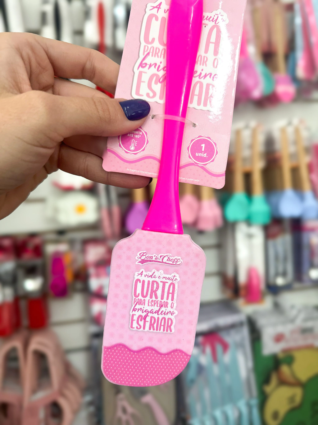 Apresentamos a Espátula de Silicone Decorada Pink, o utensílio que vai transformar a sua experiência na cozinha! Com a divertida frase "A vida é muito curta para esperar o brigadeiro esfriar", essa espátula traz um toque especial e muito charme para o seu espaço, perfeito para quem adora um toque de rosa.