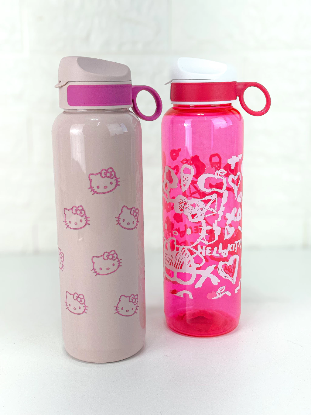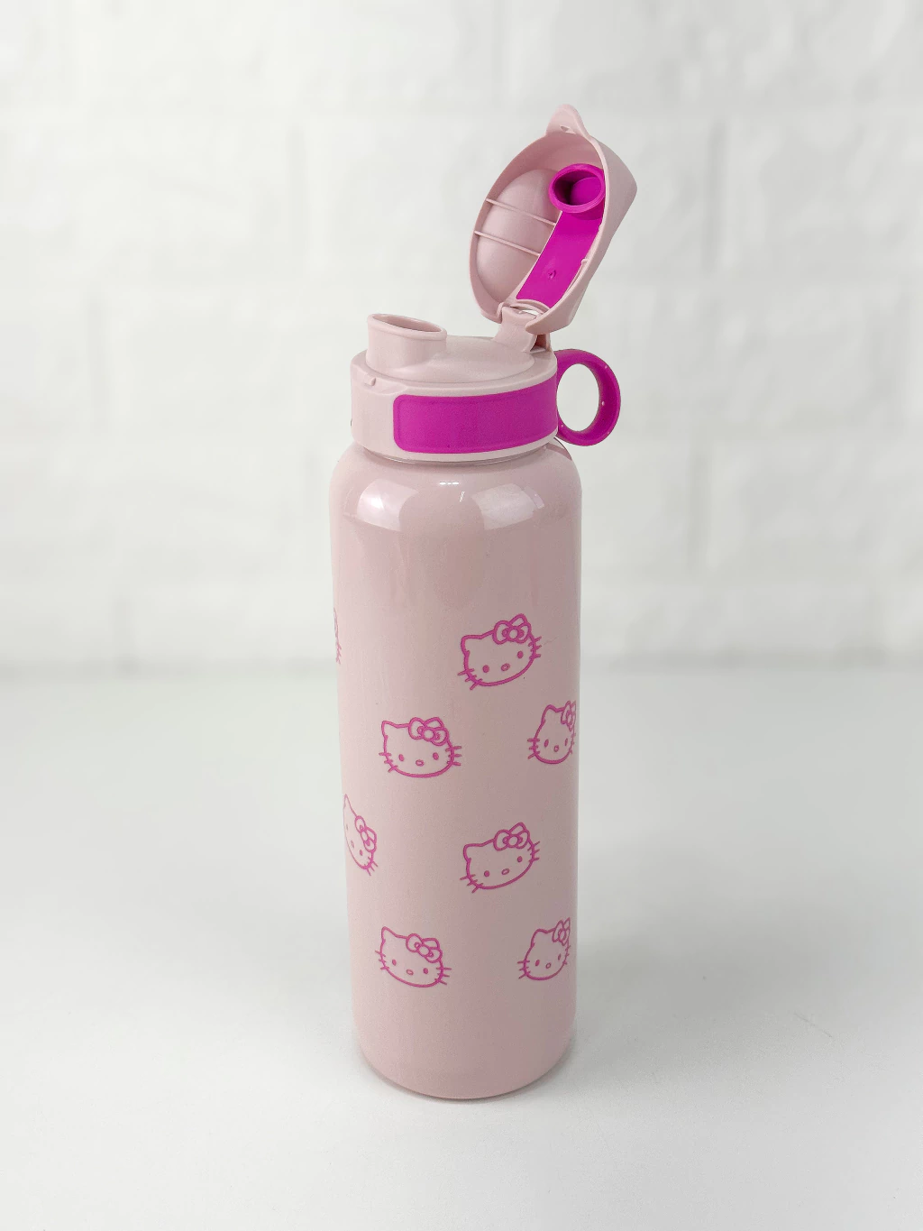 Disponível na encantadora cor rosa claro e na cor pink translúcida, ambas com a adorável estampa da Hello Kitty, essa garrafa é o acessório que faltava para deixar sua rotina ainda mais divertida.