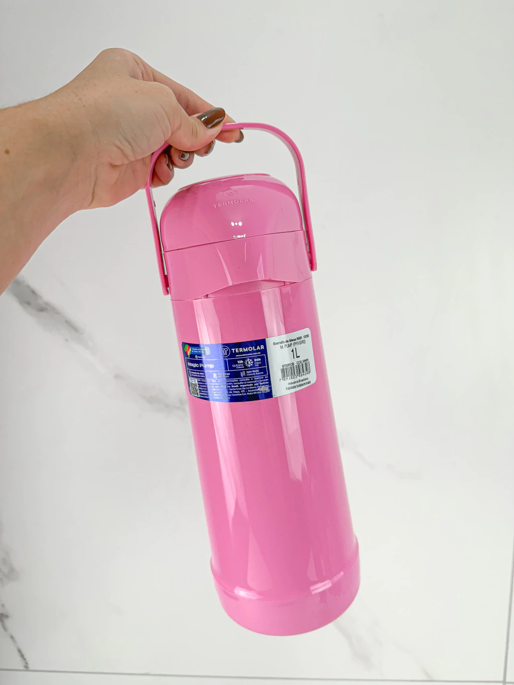 Transforme o jeito de servir suas bebidas com a Garrafa Térmica de Pressão 1L da Coleção Barbie, um item indispensável para quem valoriza funcionalidade com um toque de charme. Com capacidade generosa de 1 litro, essa garrafa possui uma ampola de vidro resistente que mantém suas bebidas quentes por até 12 horas e suas bebidas geladas por até 24 horas, garantindo a temperatura ideal para você aproveitar cada gole.