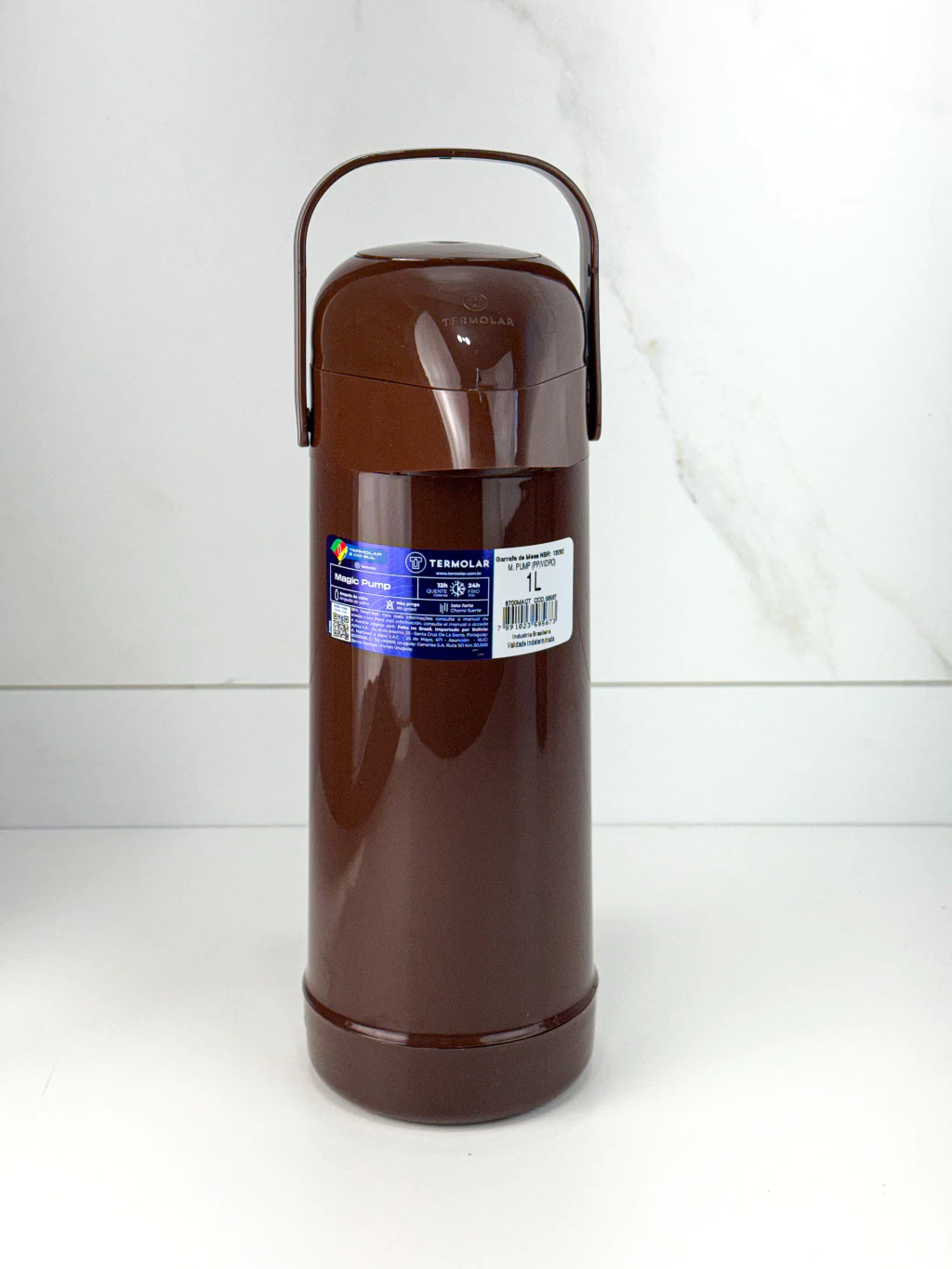 Transforme o jeito de servir suas bebidas com a Garrafa Térmica de Pressão 1L da Coleção Coffe, um item indispensável para quem valoriza funcionalidade com um toque de charme. Com capacidade generosa de 1 litro, essa garrafa possui uma ampola de vidro resistente que mantém suas bebidas quentes por até 12 horas e suas bebidas geladas por até 24 horas, garantindo a temperatura ideal para você aproveitar cada gole.