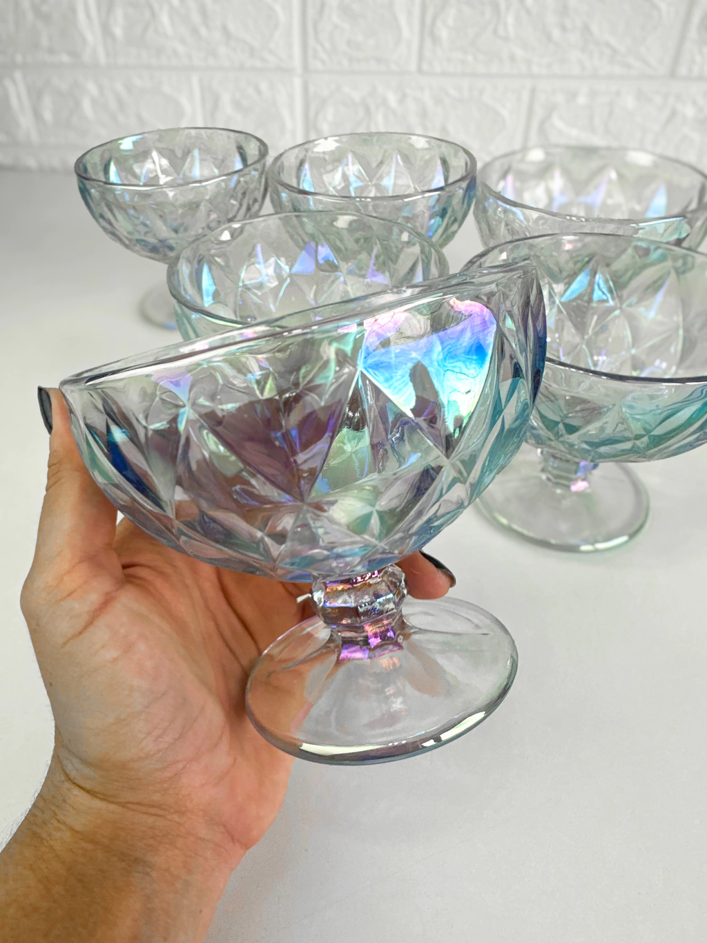 Feitas com um vidro todo trabalhado e super resistente, essas taças não são apenas lindas, mas também práticas. Imagine a cena: você servindo um delicioso sorvete ou uma sobremesa incrível em uma dessas taças maravilhosas. Vai arrasar!