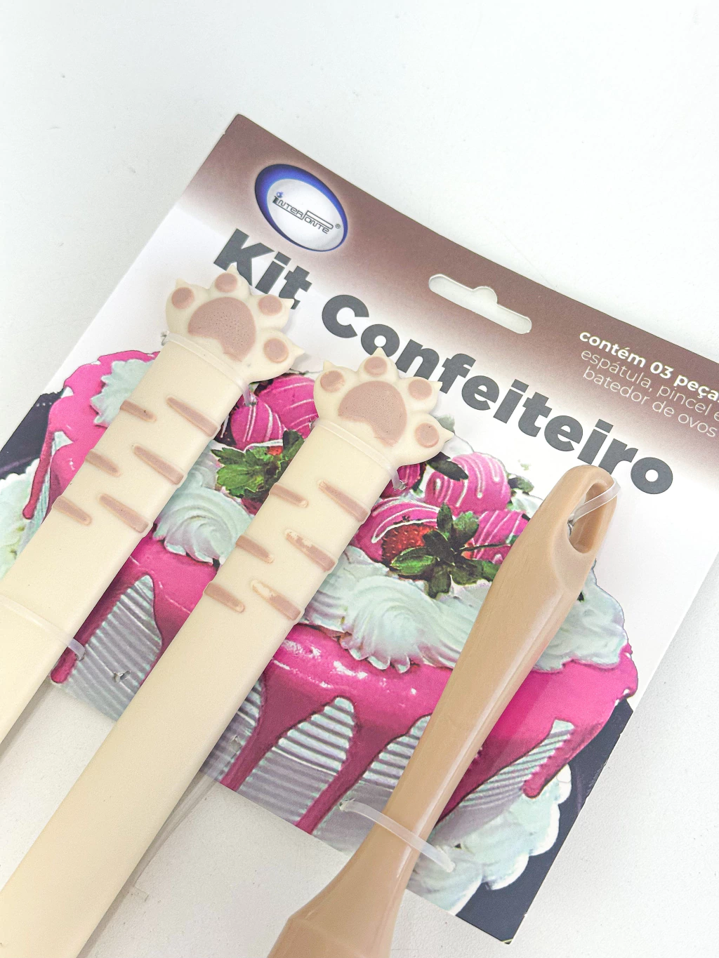 Transforme sua experiência na cozinha com o Kit Confeiteiro Gatinho, um conjunto super fofo que vai encantar os amantes da confeitaria! Composto por três peças essenciais, incluindo uma espátula de silicone com cabo de plástico em formato de patinha, um pincel de silicone e um batedor de clara, todos com 24cm de comprimento, este kit é ideal para quem ama criar delícias.