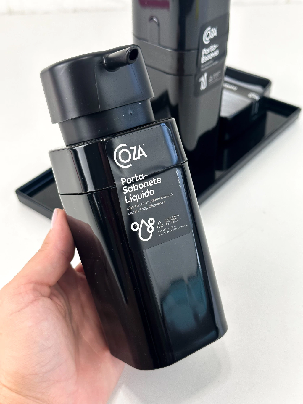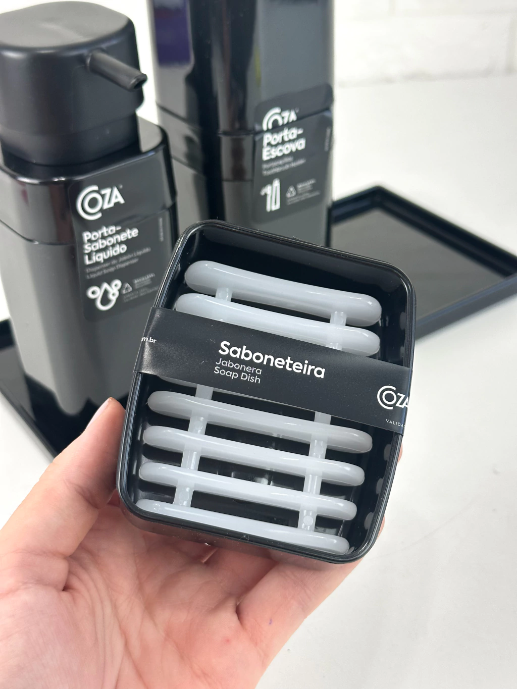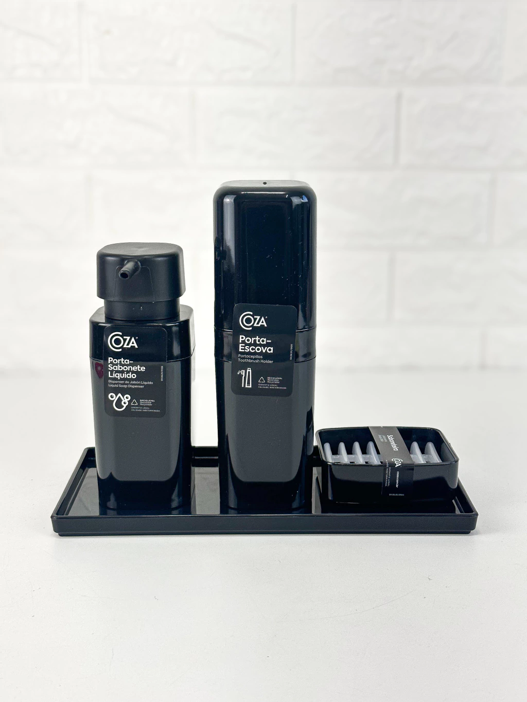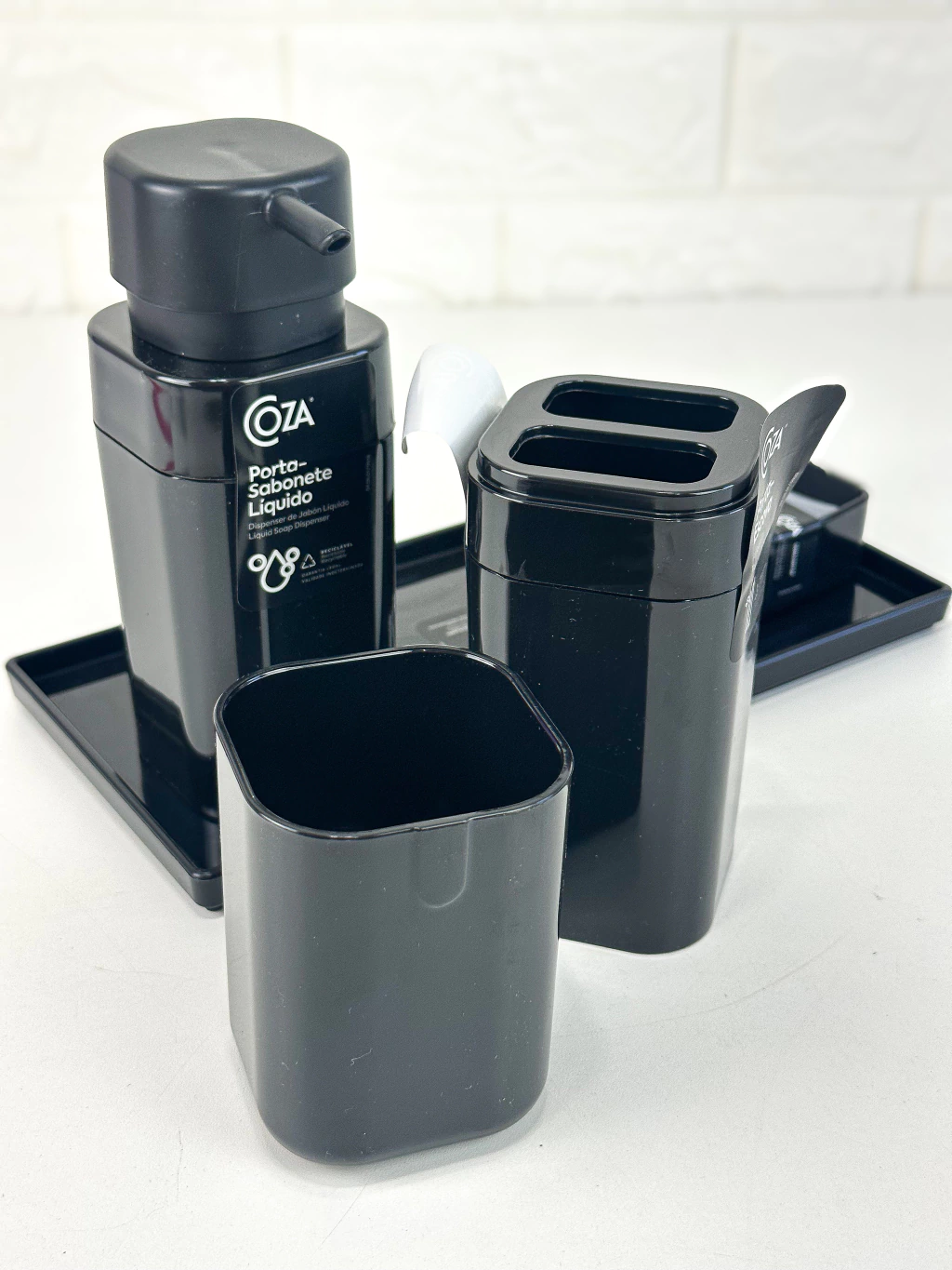 Transforme seu banheiro em um espaço sofisticado com o Kit para Banheiro Preto Coza! Este conjunto completo é a escolha perfeita para quem busca estilo e funcionalidade. Composto por uma bandeja, um porta sabonete líquido com design moderno, um porta escova de dente e pasta com tampa, e uma saboneteira, cada peça foi cuidadosamente projetada para agregar charme ao seu ambiente.